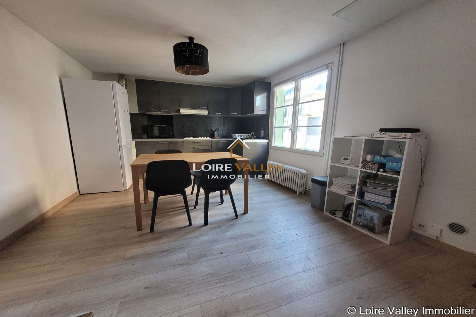 Au rez-de-chaussée : un séjour avec cuisine aménagée et équipée
