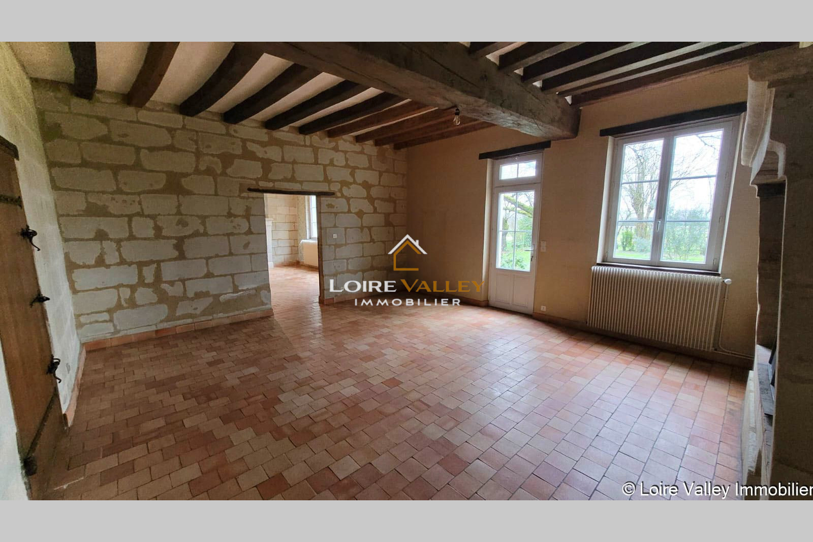 Charmante longère située dans un environnement calme. Cette propriété de 113 m², érigée sur un terrain spacieux de 1000 m² environ, vous charmera par ses beaux volumes et sa luminosité (exposition Sud). Comprenant un salon et un séjour d'une surface totale de 60m², une cuisine indépendante, deux chambres, une salle de bain et une belle terrasse, elle allie charme de l'ancien et tout le confort nécessaire pour votre famille. Equipée d'un chauffage par pompe à chaleur Air/eau (neuf), vous profiterez de ses prestations de qualité avec le double vitrage, les poutres, les tomettes, le tuffeau et le calme qu'offre cet endroit. Saint-Mathurin-sur-Loire, charmante commune, est idéalement située sur les bords de la Loire, offrant un cadre de vie paisible et pittoresque ainsi que de nombreux commerces (boulangerie, épicerie, boucherie, pharmacie...) une maison médicale, écoles, et gare (15 min d'Angers).