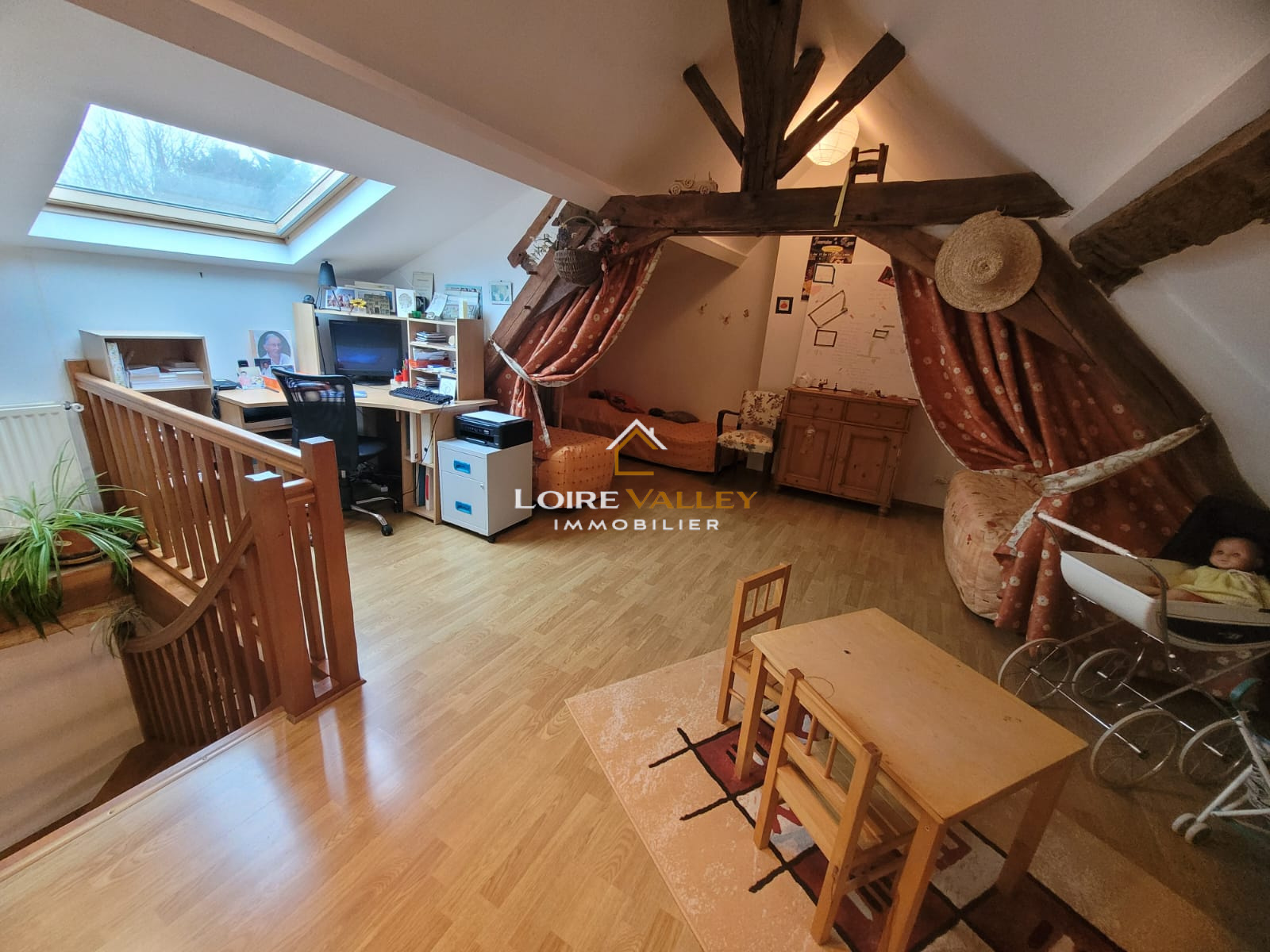 A l'étage sa grande mezzanine peut être aménagée en bureau, salle de jeux ou peut devenir une belle chambre, une autre, chambre et une salle de douche complètent ce niveau.