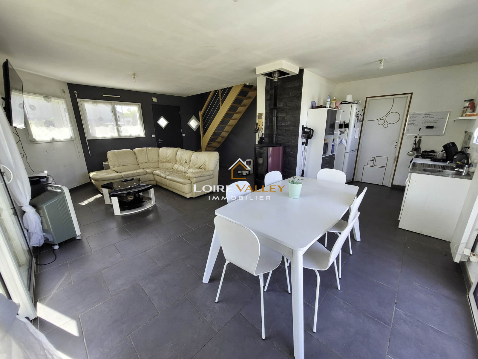 Elle dispose d’une pièce de vie spacieuse et lumineuse de 36 m², accueillant un salon et une salle à manger, ainsi qu’une cuisine indépendante. Toujours au rez-de-chaussée, une chambre et une salle d’eau permettent une vie de plain-pied, idéale pour un projet familial.